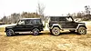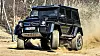 Den svarte Mercedes Geländewagen er på sin side mer seriøs og gjennomtenkt. Pluss en vesentlig dyrere løsning. Den kalles Geländewagen G500 4x4², og er i utgangspunktet en firehjuls versjon av den enorme Mercedes G-klasse 6X6 AMG. Det innebærer dobbel fjæring på hver hjulmontasje, permanent 4x4, reduksjonsgir og tre låsbare differensialer. Som Unimog har den portalaksler som hever drivakselen og differensialhuset opp fra terrenget og øker bakkeklaringen.