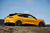 Selv om energikilden er ny, trekker Ford opp mange av de gamle triksene opp av hatten. Her er det klassiske karosserieffekter med sportslig pynt i fronten, diffusor og ikke minst den nærmest selvlysende fargen med det treffsikre navnet «Cyber Orange». Kjørelys føles overflødig.