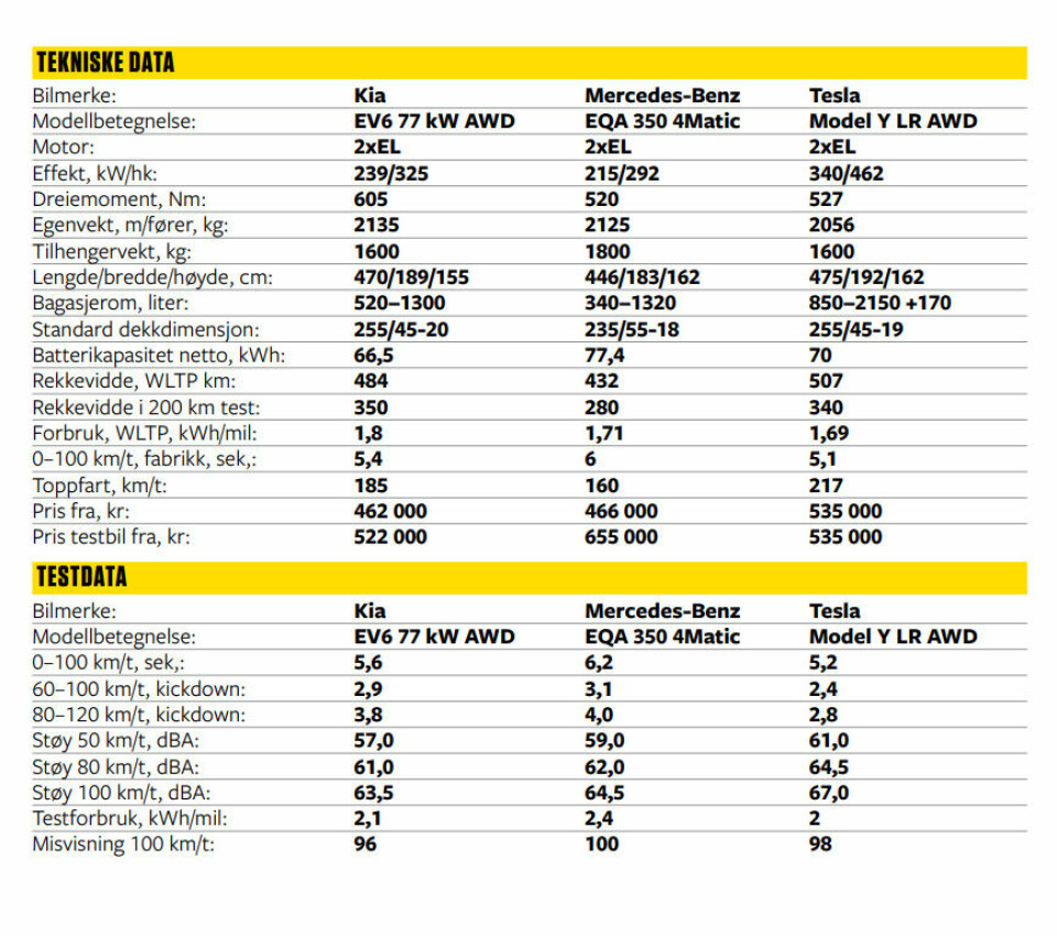 Test av Kia EV6, Tesla Model Y og Mercedes EQA: To ting vipper vektskålen i favør vinneren