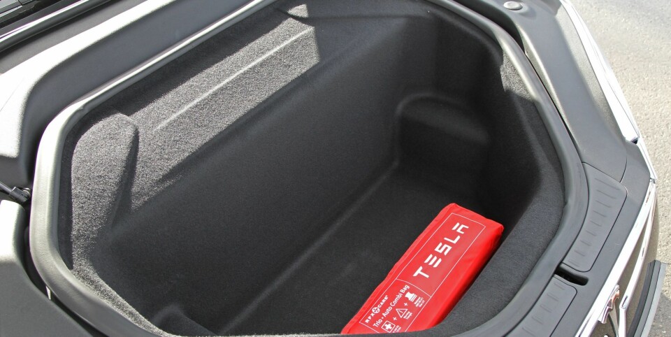 Vi savner dessuten smårom til å legge fra oss ting man gjerne har med på langtur. Det store rommet på gulvet mellom sjåførens og passasjerens bein rommer mye, men er lite forseggjort. Både Tesla og ettermarkedsselskaper tilbyr nå løsninger som utnytter denne plassen bedre.