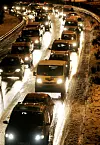 Temperaturen faller til minus fem grader. Tåken er tett og luftfuktigheten 470 prosent. Perfekte forhold for speilblank kjørebane. Likevel fortsetter den tette trafikken i 120 km/t.