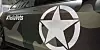 Hele bilen fikk militærinspirert kamuflasjefolie, felger i kamuflasjefarger, gult glass i frontlyktene og et takstativ med plass til militært utstyr.
