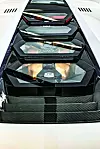 Om det blir for varmt for piloten, kan han gjøre det transparente taket lystett med et tastetrykk. Trenger han frisk luft, dreier han på ventildysene – de består av to komponenter inni hverandre som har gått fra 3D-skriver til serieproduksjon. Også her finner vi igjen sekskantformene, for Lamborghini har gjort seg flid med detaljene. Det samme gjelder felgene, som har dreieskivestil som en 80-tallstelefon.