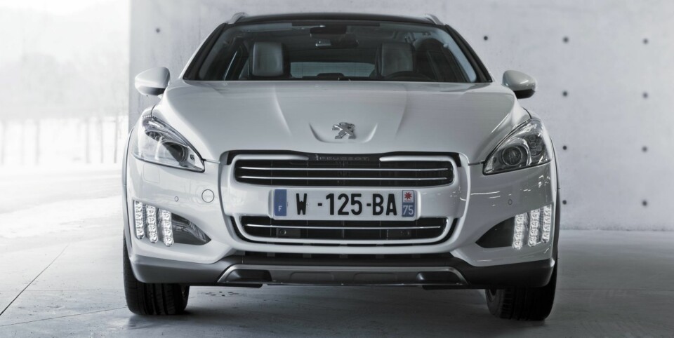 Men RXH er både til dels samme bil og en helt annen skål. For slik Audi i mange år har hatt sine Allroad-versjoner og VW Passat venter på sin Alltrack-versjon, er dette en høyreist firehjulsdrevet versjon av 508, med klare designforskjeller som for eksempel ny grill og lett gjenkjennelige (og etter vår smak litt vel jålete) LED-lys på sidene.