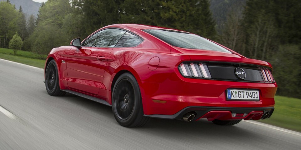 Vi har prøvekjørt de to aktuelle versjonene i Bayern. Vi starter med 2,3-liters Ecoboost. Dette er versjonen som antakelig kan få ekte die hard Mustang-fans til å felle en tåre: En firesylindret motor under panseret, med kunstig motorlyd i høyttalerne. Men i Europa er dette en mye viktigere versjon en V8-eren, og Ford tror at 85 prosent av Mustang-kjøperne i Norge vil velge 2,3-literen.