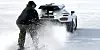 The Stig tar en full racerstart som bare sløves av det ekstremt dårlige grepet. Det provisoriske skitauet mitt - ikke modifisert på noen måte fra et vanlig tauereip - strammes til, og jeg kjenner høyoktan drivstoff og hører bjeffene fra Koenigseggen mens armene mine blir slitt ut av leddene og biter med våt is slår inn i ansiktet mitt. Og så er vi i gang og raser rundt sjøen i tandem mens isen knaker rundt oss og Ageraen bjeffer og skiene skraper og rumler på den papirtynne isen. Og når selv the Stig blir plaget av lavnivå overflatefriksjon kontra en høynivå bil, blir dette superbil-skitur-våset faktisk ganske underholdende. Men det er en følelse av noe uvirkelig her, og det varer bare i en snau halvtime. Når sola kommer fram blir det stadig mer vannskisport. Og mens the Stig tar seg en runde til, tygger bakhjulene til Ageraen seg gjennom isen og avslører den egentlige sjøen. På tide med en rask retrett.