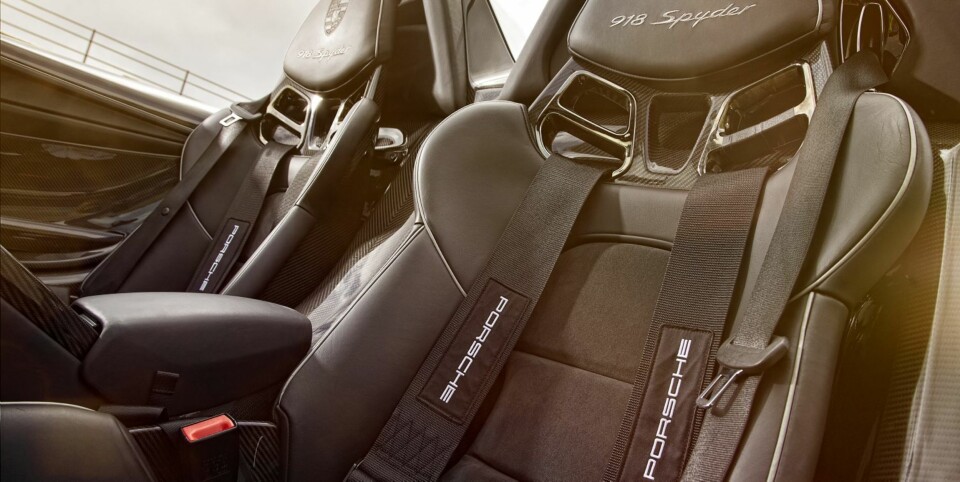 Tilbake i depotet har jeg en halvtime til å roe ned og bli kjent med interiøret i 918. Her er det en annen versjon av karbonfiber. Sentralsystemet opereres fra en enorm glassaktig pekeskjerm. Kjente Porsche-takter, men i hypermoderne form. Komfortabel er den også, med lignende ergonomi som McLaren.