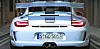 Så den fungerer som gatebil. Den er faktisk fin som en hverdagsbil, selv om du kanskje ville vurdere hørselvern for å holde ute den ville hjulstøyen (solide fester, eller hva?). Og den tunge banekløtsjen gjør bykjøring til tyngre fotarbeid enn sykling. Bortsett fra det; ingen problemer. Men du trenger å være litt overlegen for å kjøre med den hekkspoileren. Vet ikke om jeg har det i meg. I det minste har den pen lakk. De kunne ha latt den være i naken karbon. Ja, frontvingene og panseret også, for det er karbon alt sammen. Dørene er i aluminium, sidevinduer i Perspex, og aircon og GPS får du gratis hvis du vil. Men det er greier fra GT3 RS 3,8. Selv hekkvingen er den samme, men med litt skarpere vinkel for mer marktrykk - så mye at den til tider hever fronten opp, noe som igjen kompenseres der framme.