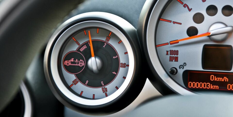 Den nye Minien har et eget instrument som forteller deg hvor lenge du har kjørt med taket nede.