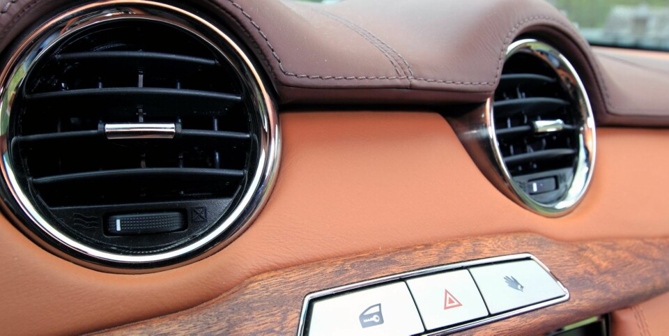 Interiøret benytter seg av materialer som semsket skinn i taket, skinn i dashbordet og en velpusset lakkert treflis over den ruvende midtkonsollen.