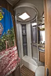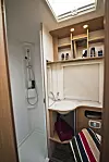 Det å gå inn på baderommet i disse to bobilene er som å besøke to ulike verdener. I Sun Living er det godt med plass. Hos Carado er det helt omvendt. Men til sistnevntes forsvar kan vi si at den har mange av detaljene som vi har på testskjemaets sjekkliste. Trerist i dusjkabinettet, tre håndkleholdere, dorullholder, takluke og lysbryter i barnevennlig høyde. Men hvor fint dette enn høres ut, kan vi ikke se bort fra at det blir klaustrofobisk trangt. Oppbevaringsplassen er middels. Sun Living har akkurat som konkurrenten integrert dusjkabinett, men også noen feilskjær, som en lysbryter på halvannen meters høyde. Skulle ikke dette være en bobil som henvender seg til barnefamilier? En nivåforskjell fra gulvet i boenheten på nesten to desimeter og ett eneste minimalt speil gir heller ingen plusspoeng.