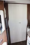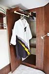 En spesiell detalj liker jeg særskilt godt. Ovenfor den høyre enkeltsengen (i bobilens kjøreretning) finnes en garderobe med utdragbar skinne. Noe som gjør det enkelt å komme til klærne her, også fra baderommet.