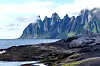 Aller lengst tid bruker vi på rasteplassen Tungeneset, ytterst på neset mellom Steinfjorden og Ersfjorden. Her har Statens vegvesen bekostet en såkalt gangbane i sibirsk lerk, og via den når du et godt stykke utover svabergene, som du deretter kan fortsette på til du er på optimalt fotografisk skuddhold av Okshornan, eller "Djevelens tanngard", som den taggete fjellrekken også kalles. Et godt eksempel på hvordan veimyndighetene kan ta grep og foredle opplevelsen til veifarende fra fjern og nær.