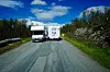 En kilometerlang kolonne fra Hugo tivoli er heldigvis på vei mot Larvik, i det vi svinger ut i rundkjøringen ved Lians Caravan, og presser ned gasspedalen i retning Senja.