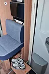 Markise, duocontrol, Seitz S7-vindu og elektrisk stigtrinn har den også. Inngangen er utstyrt med myggnett, skoskap og en inngangsdør som har papirkurv og knagger for ytterplagg.