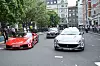 Plutselig kan man høre motortorden, etterfulgt av stormende jubel lengre opp i løypa. Storskjermene som er utplassert sparkes i gang, og en Ferrari dukker opp. Den italienske superbilen virker til å ha vekket publikum, og med ett er alle framme med kamera og mobiltelefon for å dokumentere millionbilens ankomst til den britiske hovedstaden.