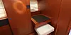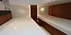 Eierlugaren forut er svær, med mye skap og stuveplass. PC-en får plass på et lite bord på styrbord med sittepute som kan skyves rundt. Akterlugaren kan omgjøres med to enkeltkøyer eller en dobbeltkøye, alt hva som passer selskapet om bord. I vår versjonen med ett toalett har du i tillegg et svært walk-in closet mellom lugarene. Dermed forsvinner alt du har med deg i skap og skuffer. Du får også båten med to toalett, men da går plassen til det store skapet dukken. Ute i cockpit er det også nedgang til et svært lagerrom og teknisk rom. Her kan du legge unna ting som du ikke trenger så ofte.