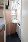 Karosseriet er blitt forlenget med knappe halve meteren, og det har blant annet medført et romsligere boareal og en virkelig stor garasje på opptil 1400 liter. Den ekstra lave garasjen, som ikke åpnes som på en standard bybobil (se foto), rommer mye og har også uttrekkbare skinner (ekstrautstyr).