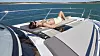 Ved konsollen er det sitteplass for tre, mens L-sofaen akter gir sitteplass for en helg med en hel gjeng gode venner. Og skulle det knipe på plass, har du alltid plass til noen til i solsengen i baugen.