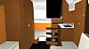 Det er plassen under dekk som imponerer mest. Takhøyden er god og bredden større enn den ser ut utenifra. Du har en fullverdig kjøkkenløsning på venstre side og toalettrom med dusj på høyre.