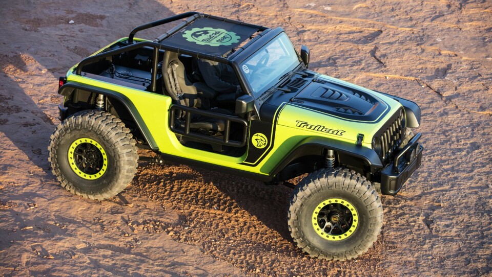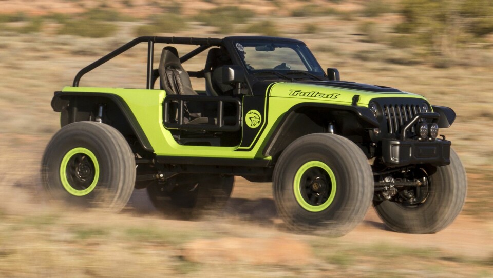 Høvdingen i samlingen er Trailcat-konseptet som drives av en 6,2-liters HEMI Hellcat V8-motor på 707 hk. Dette er den samme motoren som finnes i Hellcat-versjonene av Charger og Challenger. Giringen må du gjøre selv med en sekstrinns kasse. Utgangspunktet for Trailcat er en Jeep Wrangler, men akselavstanden er økt med over 30 centimeter for å gjøre plass til den store motoren