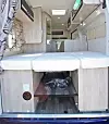 – Denne har fire sengeplasser, hvorav to er i dobbeltseng bak. Denne vippes opp når den ikke er i bruk. De siste sengeplassene rees opp i sittegruppen foran i bilen. Badet er i midten og har smarte løsninger for å frigjøre mer plass. For eksempel kan toalettet snus for å få mer beinplass, og snus tilbake for å få mer plass i dusjen, forteller Gjermundsen.