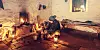 På tide å spise. Villmarksvante Justin får raskt fyr i peisen på hytta og finner fram en solid porsjon pølser og bønner. Det er heldigvis ikke alle som har glemt hvordan verden egentlig fungerer. Den skotske hytta er bygd for jobben, og varmes raskt opp til en solid kapsel mot den kalde skotske vinternatta.