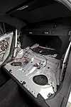 For å spare vekt er mye av komforten ofret. Forsetene er byttet ut med et par fra C63 Black Series-modellen som ser ut til å ha samme sittekomfort som en kirkebenk, men der sidestøtten neppe er noe problem. Baksetene er kastet ut, det samme er innmaten i dørene bak. Deler som panser, støtfanger, diffuser, spoiler og speilhus er i karbonfiber for å spare ytterligere kilo. For å optimalisere luftstrømmen til radiatoren er grillen erstattet med netting.