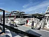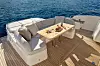 Akterdekket har en stor U-formet sittegruppe med teakbord og solseng ut mot vannet. Jollegarasjen med tilgang fra badeplattformen har plass til en Williams SportJet 345 og diverse badeleker eller gadgets. Garasjen har et system som skal gjøre det lett å skyve ut tenderen, mens heving og senking av plattformen tar seg av sjøsettingen.