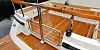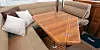 På babord side akter i hytta er det vinkelsofa med bord som kan skyves opp og ned på stang avhengig av behov. Det brede copilotsetet har vipperygg som gjør at det fungerer begge veier. De