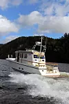 Her er det tyngde og vinkel nok til at du unngår harde slag. Dessuten har båten knapt noen merkbar planingsterskel, slik at det er lett å finne et riktig hastighetsområde.