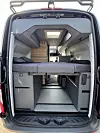 Kjøkkenmodulen har også en ekstra plate som enkelt kan vippes opp for økt arbeidsflate. Modulen er utstyrt med skap mot skyvedøren med plass til en liten kaffemaskin, tre store skuffer, to bluss og vask. Kompressorkjøleskapet rommer 84 liter og har fryseboks.