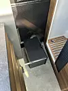 Under kjøleskapet er det en skuff med lokk. Skuffen er på skinner slik at den kan skyves ut og brukes som trinn opp til den tverrstilte dobbeltsengen. Seks romslige skap over seng og kjøkken samt to over sittegruppen er praktisk.