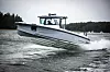 Testkjøringen foregår under «Finnboat Floating Show», der båtbransjeforbundet samler et bredt utvalg av nyheter fra finske båtprodusenter. Straks vi kommer ut av femknopssonen, braker det løs med en lang rekke ulike farkoster.