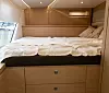 På babord er det en dobbeltkøye på tvers – tenkt som eierlugar – mens gjester eller barn bruker kabinen på styrbord. Begge har eget bad med dusj og toalett, store vinduer, takluke for lys og luft, samt godt med lagringsplass.