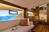 Hovedlugaren i baugen byr på gedigen dobbeltseng og gode oppbevaringsmuligheter. Midtkabinen ligger heller ikke langt etter på bokomfort. En fin sofaløsning i inngangspartiet er smart til omkledning, eller å slappe av.
