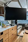 Fra taket kan en stor flatskjerm vippes ned og dreies, slik at du også kan sitte ute og følge sendingene – kanskje når resten av familien har lagt seg, og fotball-VM går direkte?