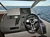Flybridgen sanker ikke uhemmet applaus, mest på grunn av den kombinerte sittebenk/solsengløsningen akter, som ikke er et velfungerende kompromiss. Like fullt sitter tre personer komfortabelt i fartsretningen, og med få justeringer på dashbordet er også førerposisjonen her flott.