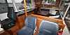 Førerposisjonen i Targa 44 er praktisk, og det finnes ikke mange båter der tilgangen er lettere til instrumentene, kartbordet og dørene mot dekk - igjen i ren bruksbåttradisjon. Her har flere personer plass til å navigere samtidig, nesten som på en profesjonell bro. Førerkomforten er ikke den aller beste i klassen, men man sitter likevel bra i Targas enkle sete. Lett tilgang til sidedekket er førsteprioritet, noe som gjør Targa 44 IPS manøvrerbar også for én person. Volvo Pentas velkjente joystick på dashbordet er bortimot det eneste som vitner om at Targa er inne i en ny tidsepoke.