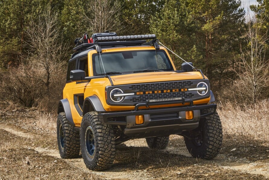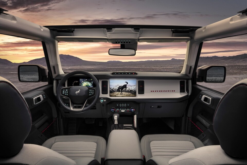 Bronco kommer i kort og lang versjon, og med to motoralternativer. Enten en 2,7-liters V6 Ecoboost med 310 hk og et dreiemoment på 540 Nm, eller den firesylindrede 2,3 Ecoboost-motoren med 270 hester som også finnes i blant andre Mustang. Overføringen skjer med en syvtrinns manuell girkasse eller 10-trinns automat som finnes i modeller som Mustang, Ranger og F-150.