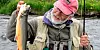 Der plasserte vi Sigurd som aldri før hadde fisket med flue! Etter et kort krasjkurs i kasteteknikk, ville han sikkert kaste både 10 og 12 meter - tenkte vi. Så enkelt var det ikke, nei.