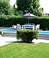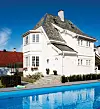 - Bassenget med platting ble lagt sørøst - slik at inngangspartiet ble koblet mot plenarealet i sør for bedre utnyttelse av lekearealene i den perioden bassenget ikke er i bruk (hvilket jo faktisk er det meste av året).