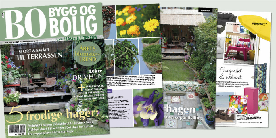 Uansett vil du finne mye spennende i denne utgaven av Hage & uterom: årets tøffe blomstertrender, inspirasjonssider, hvordan du lager en røff spiseplass, lekre drivhus og mye mer.