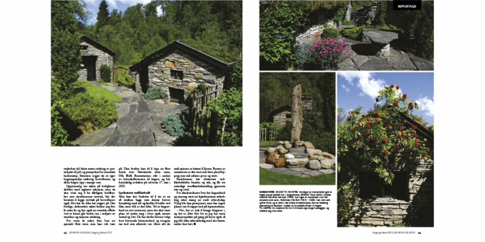 Ivar har brukt stein i store deler av hagen sin, til bygninger, trapper og murarbeider. Det har blitt steintøft!
