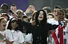 MICHAEL JACKSON var på scenen i totalt fire minutter, og brukte mesteparten av tiden til å vinke og dele ut slengkyss til publikum. Til tross for en skuffende opptreden, var det mange fans som besvimte da de fikk et glimt av vår tids mest omtalte artist.