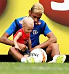 Lille Lucca er ofte å se som maskot når pappa spiller kamp, og det er ingen tvil om at Neymar er stolt av sitt lille sjarmtroll.