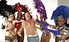 Fra gulvet registrerer den nye karnevalskongen at Bia Silvério, (33), Isabelle Leal (25), Noemi Sanchez (34), Katia Solange (43) og Cristiane Da Silva (32) rister så mye på paljettene at øynene hans klikker som kastanjetter.