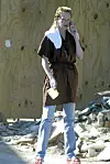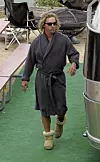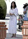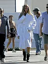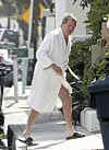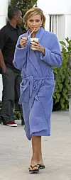 Hun føyer seg inn i rekken av kjendiser som følger Playboy-mogulen Hugh Hefners kleskode: Morgenkåpe fram til 20.00.