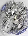 Innred og pynt med kanner og brett, lysestaker, fat, bestikk og serviettringer, og bland gjerne sølv og plett i forskjellige stiler. Og nøy deg ikke med å "forsølve" festbordet. Hva med å sette sølvlysestakene på badet, sammen med et lite brett til å legge fra seg ting på, og en pokal til q-tips?