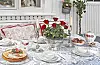 Dekk et hyggelig sommerbord ute eller inne, og la det blomstre med friske roser og rosedekorert porselen!